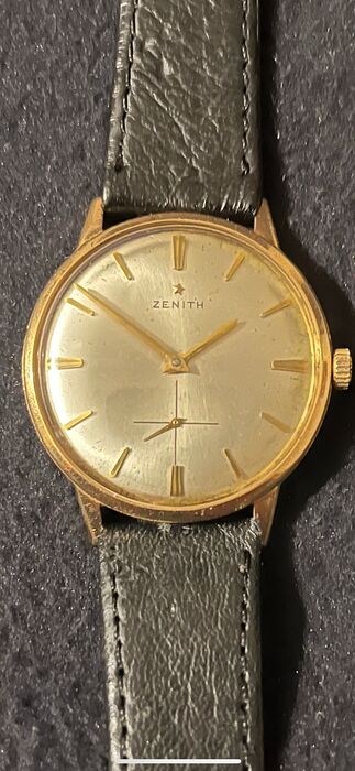 Prachtig Zenith Stellina herenhorloge in 18 kt massief goud, geheel originele kast, wijzerplaat en opwindkroon, volledig functioneel, zonder mankementen en met originele wijzerplaat in uitstekende staat gezien de leeftijd. Afmeting diameter circa 34 mm zonder kroon 36 mm met kroon. Totaal gewicht 33 gram.