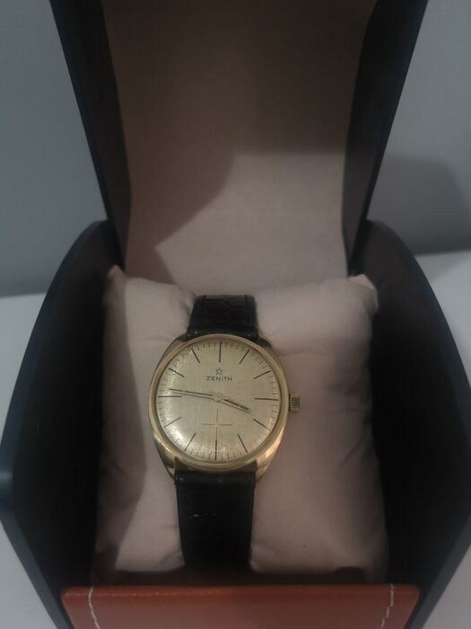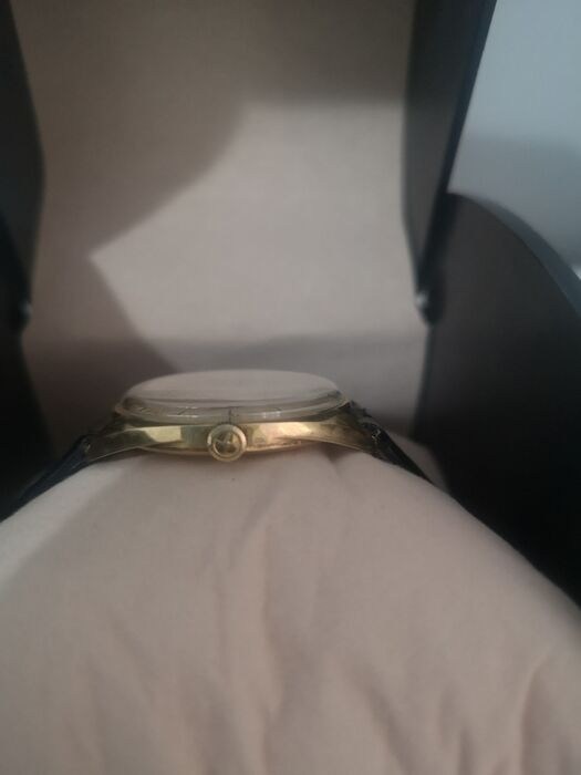 Het horloge is van 18 kt geelgoud, de gesp is 20 micron verguld. Het gewicht van de koffer is ongeveer 15 gram. De diameter zonder kroon is 34 mm. Het horloge werkt perfect en de condities zijn zoals op de foto's te zien is.
