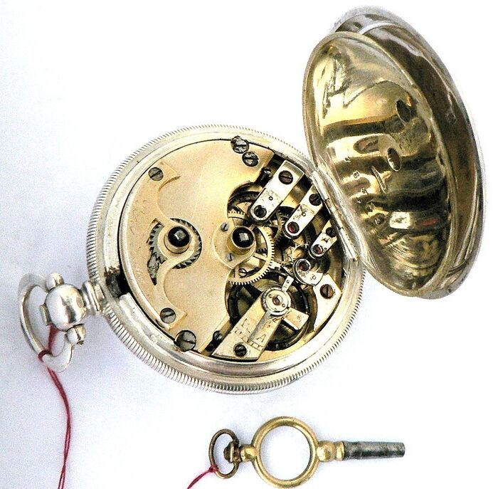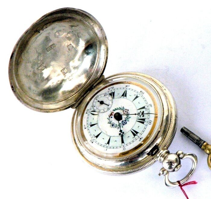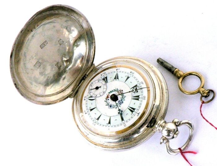 historisch museum Biedermeier sleutelhorloge - werkt maar loopt - 800 zilveren Savonette voor de Ottomaanse markt van de beroemde Engelse fabrikant DENT LONDON! Meerdere kenmerken van een luipaardkop, striding lion, wat staat voor een gehalte van 925, korhoenders, jaarletter K. diameter. zonder hanger 5 cm, dikte 2,1 cm, gewicht 86 gr