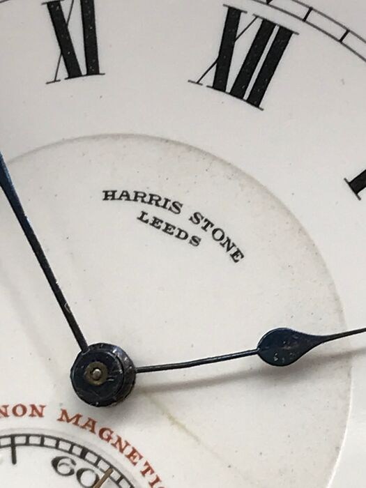Harris Stone Leeds , Swiss Made, Non Magnetiv en heeft zwarte Romeinse cijfers