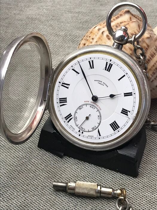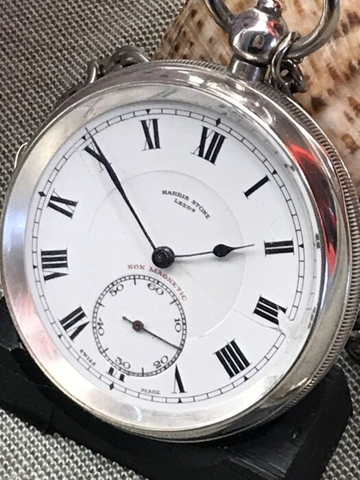 Antiek zilveren zakhorloge HARRIS STONE LEEDS met ketting