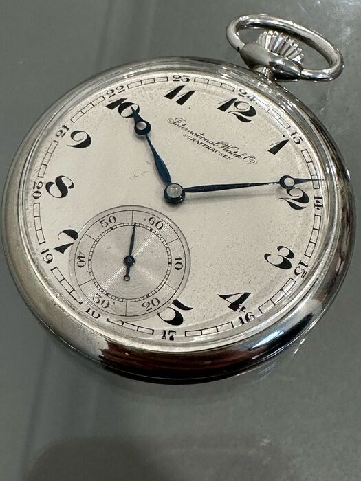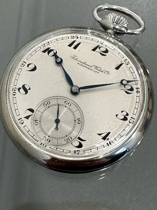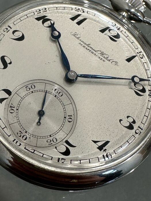 Wijzerplaat: zilver, origineel, gesigneerd IWC Schaffhause, zwarte Arabische cijfers