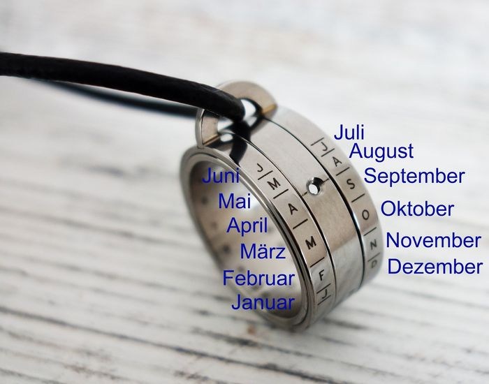 • Je kunt deze zonnewijzer dragen als vingerring/ring (RS: 59-60) of aan het geitenleerkoord als collier - de binnenkant van de 3 metalen ringen is verplaatsbaar - de ring wordt aan het touwtje gehangen en het seizoen is aangepast via de middelste ring, de zon geeft dan de tijd weer in de binnenste ring door het gaatje in de middelste ring. een replica van een middeleeuwse boerenzonring