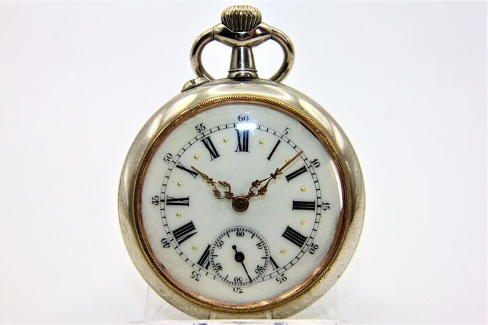 Prachtig argentaans zakhorloge. Het heeft een diameter van 50 mm, gewicht van 88,7 gram. Begin 1900. Romeinse cijfers wijzerplaat. Werkend niet gereviseerd. Verzamelbaar en om te dragen. Geadviseerd.