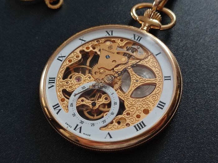 Extreem zeldzaam en spectaculair zakhorloge gemerkt "Sanzod" Swiss Made Skeletonized, Spectacular. Perfect functioneel. Nieuw horloge - NOS - Origineel winkelfonds uit de tweede helft van de jaren 1900. Moeilijk te vinden!