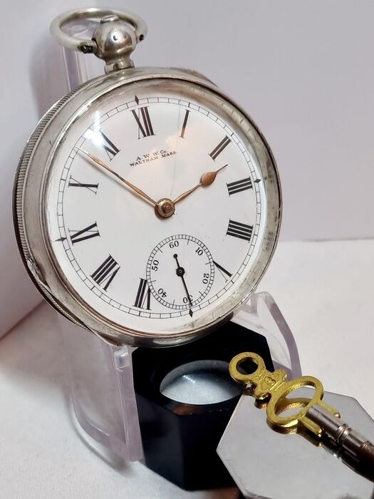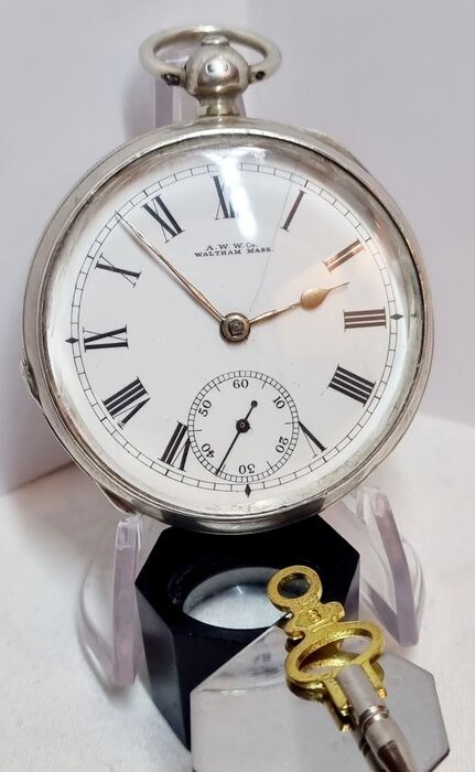 Prachtig mechanisch gouden uurwerk, gesigneerd met Waltham Mass. Veiligheidspinion De kast zelf is gemaakt van massief zilver en sluit zeer goed. Het referentienummer is: 472029